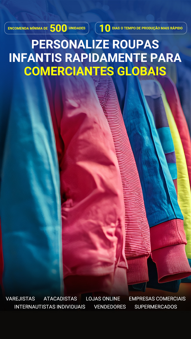 Com uma capacidade de produção massiva, avançadas capacidades de design, uma cadeia de suprimentos abrangente e um sistema logístico eficiente, estamos comprometidos em entregar roupas infantis personalizadas de alta qualidade para comerciantes em todo o mundo a preços competitivos.
